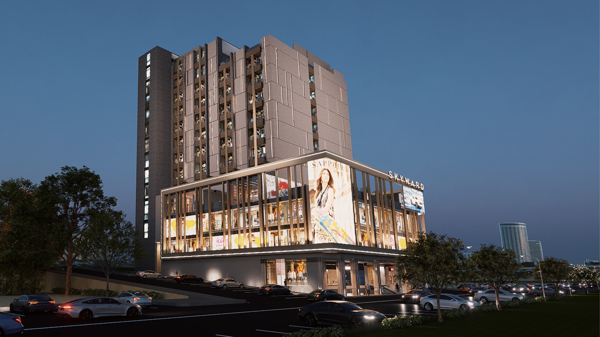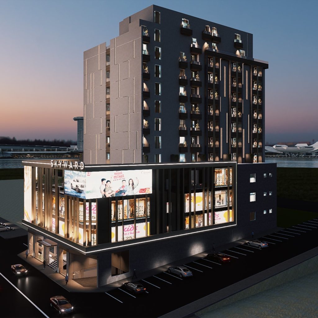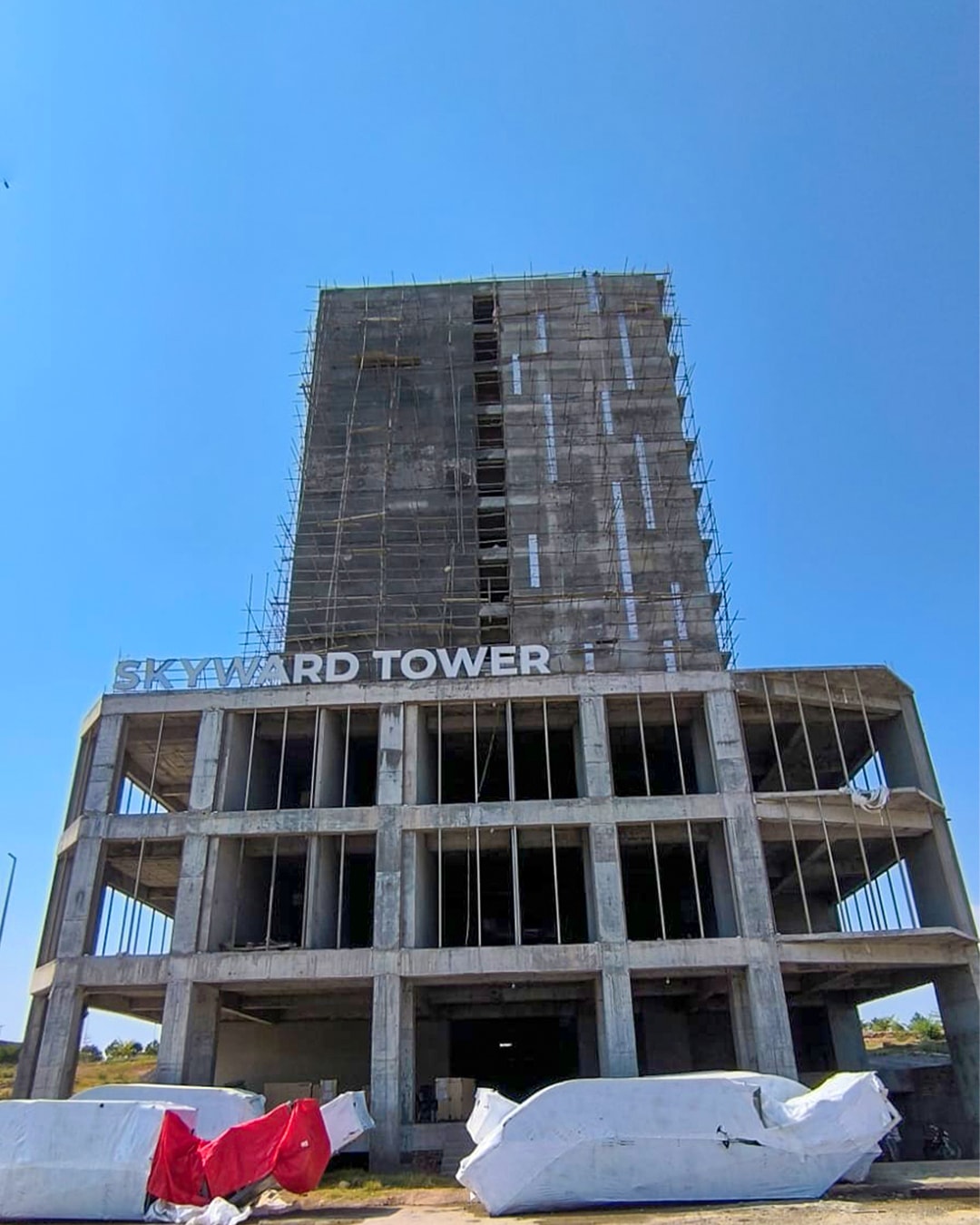 The gigantic structure of Skyward tower stands tall as an epitome of graceful architecture enriched with dynamic monochromatic shades of splendor. 200ft tall tower has G+12 storeys and its magnificence is visible from distance because of its opulent outlook as it is the largest in the locality.